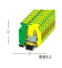 MBK3/E-Z-PE 小型接地端子带通用安装脚,可分别安装到 NS15 小型安装轨上,按国际标准采用黄绿双色,由于接地导线与安装轨相连,可节省时间和空间,直接将安装轨