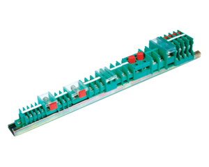 绝缘材料采用聚碳酸酯, PBT, 绝缘性能好, 阻燃耐湿、耐老化,120℃以下安全工作,额定工作电压660V, 金属结构件采用组合螺钉压接技术, 连接导线额定截面积为 0.5~50mm2 ,G型导轨安装。很适用于机电行业中开关板电控柜内的主回路及二次回路导线的过渡连接。
