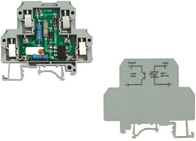 利用普通接线端子和装电子器件,实现光电传输耦合,使输入信号与输出信号在电气上隔离,同是真有信号指示等功能。